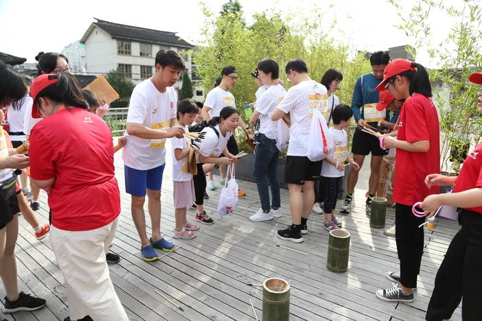 活动现场每人领取一份竹筒装的打卡地图,按地图所示“1234”顺序依次寻找打卡点进行打卡。打卡活动更是丰富多彩:打卡地图的九宫格拼图活动,让选手更深入了解阳明故里;投壶游戏体验流传了两千多年的投掷游戏;看图猜电影,结合电影博物馆主题,一起回顾经典电影;填写励志卡,写下自己的理想励志卡,识名人,学文化,明理想。